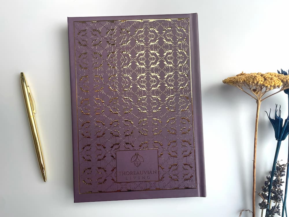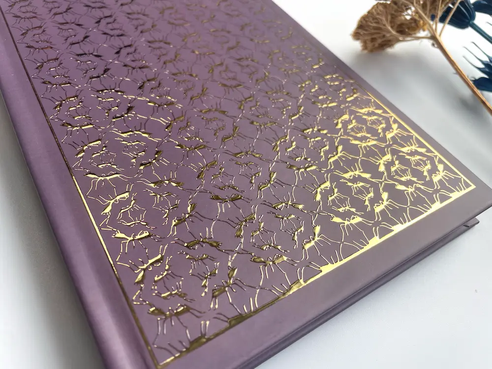 A truly special A5 hardback notebook, depicting a metallic foil detailing of your choosing on the front and back covers showcasing a repeating ant pattern in the design inspired by the natural beauty of nature.